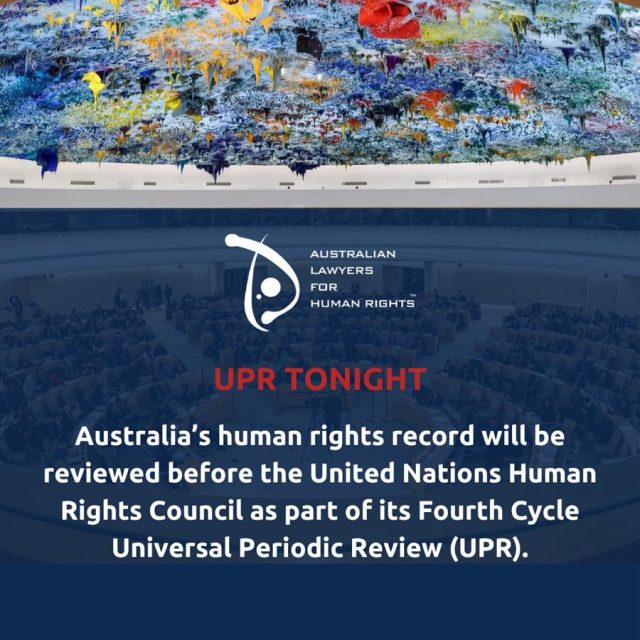TONIGHT: Australia’s Universal Periodic Review at the UNHRC: This evening from 7.00 pm AEDT Australia’s human rights record will face scrutiny when the Australian Government appears before the United Nations Human Rights Council (UNHRC) in Geneva for its major human rights review, known as the Universal Periodic Review (UPR).